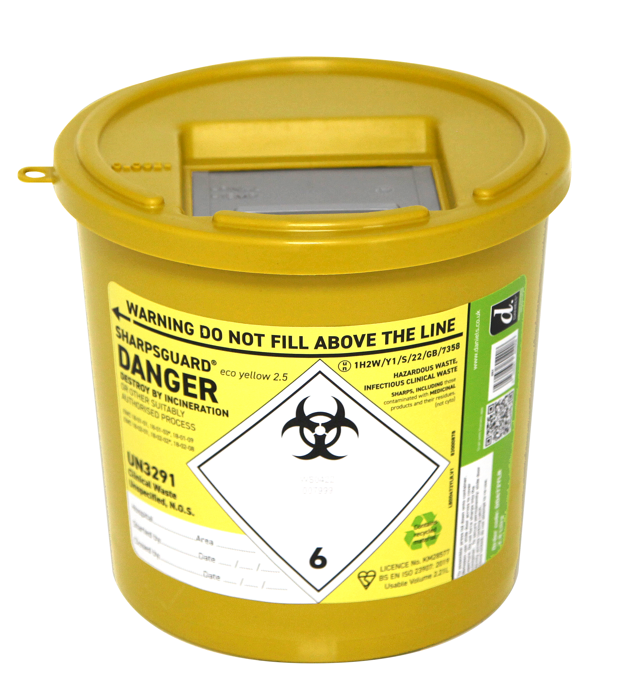 The SHARPSGUARD ® yellow 2.5 is a versatile sharps disposal unit designed to integrate seamlessly with our POUDS ® 2.5 tray. It features a side handle to prevent rolling during transit and provides a grip positioned away from the opening.