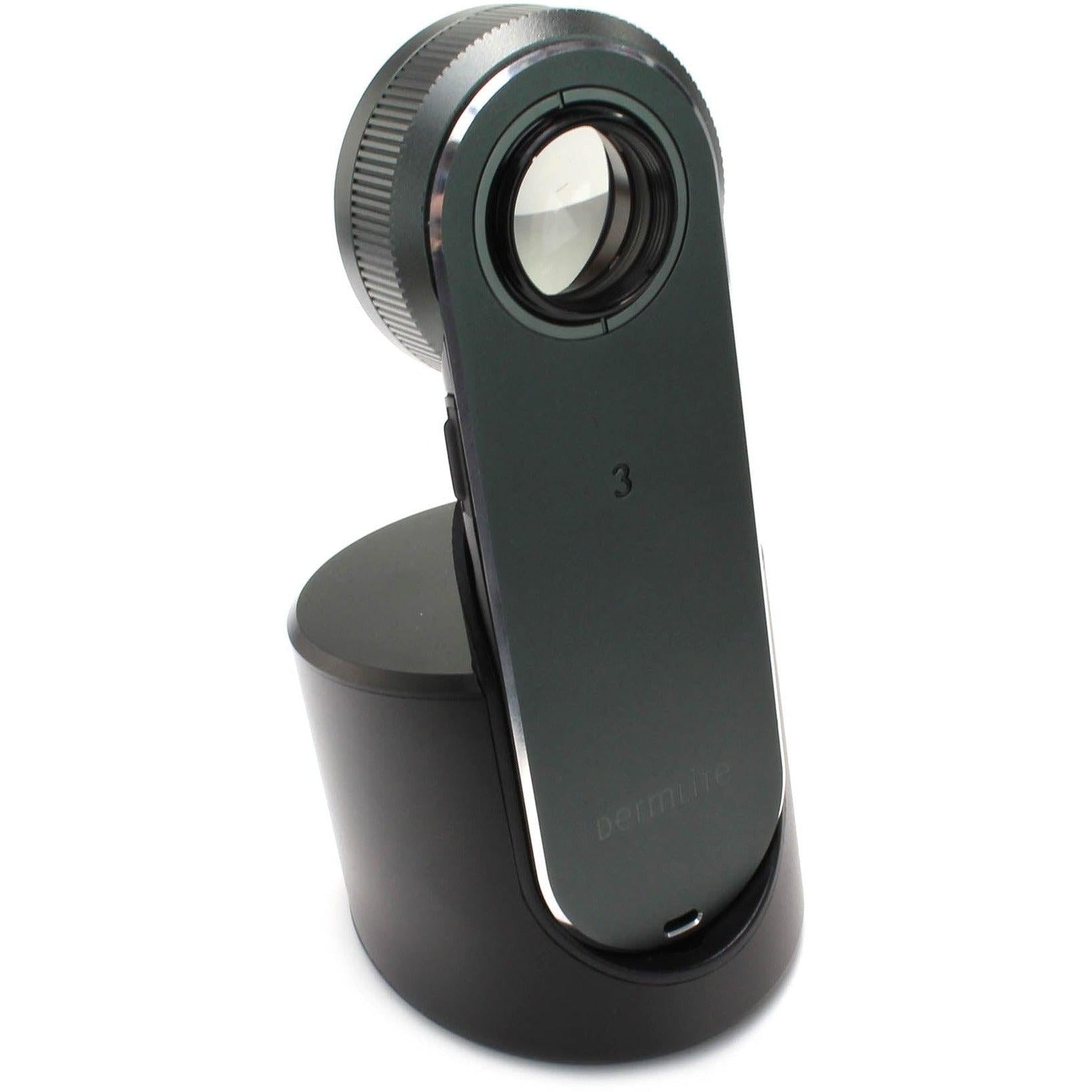 The DermLite DL3N allows you to effortlessly create a personalized digital dermoscopy system by connecting it to a variety of compatible cameras or mobile devices with cameras. Simply connect your digital camera, smartphone, or tablet, extend the spacer, and capture clear, glare-free images with ease. This cutting-edge device alerts you when its long-lasting lithium battery needs recharging: the "3" on the top changes from green to orange when the charge falls below 25%.