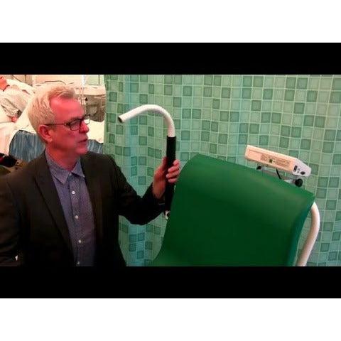 The M-200 is equipped with two rear brake wheels and fixed front wheels. An optional handle is available for easier patient maneuvering, along with an optional seat belt.
