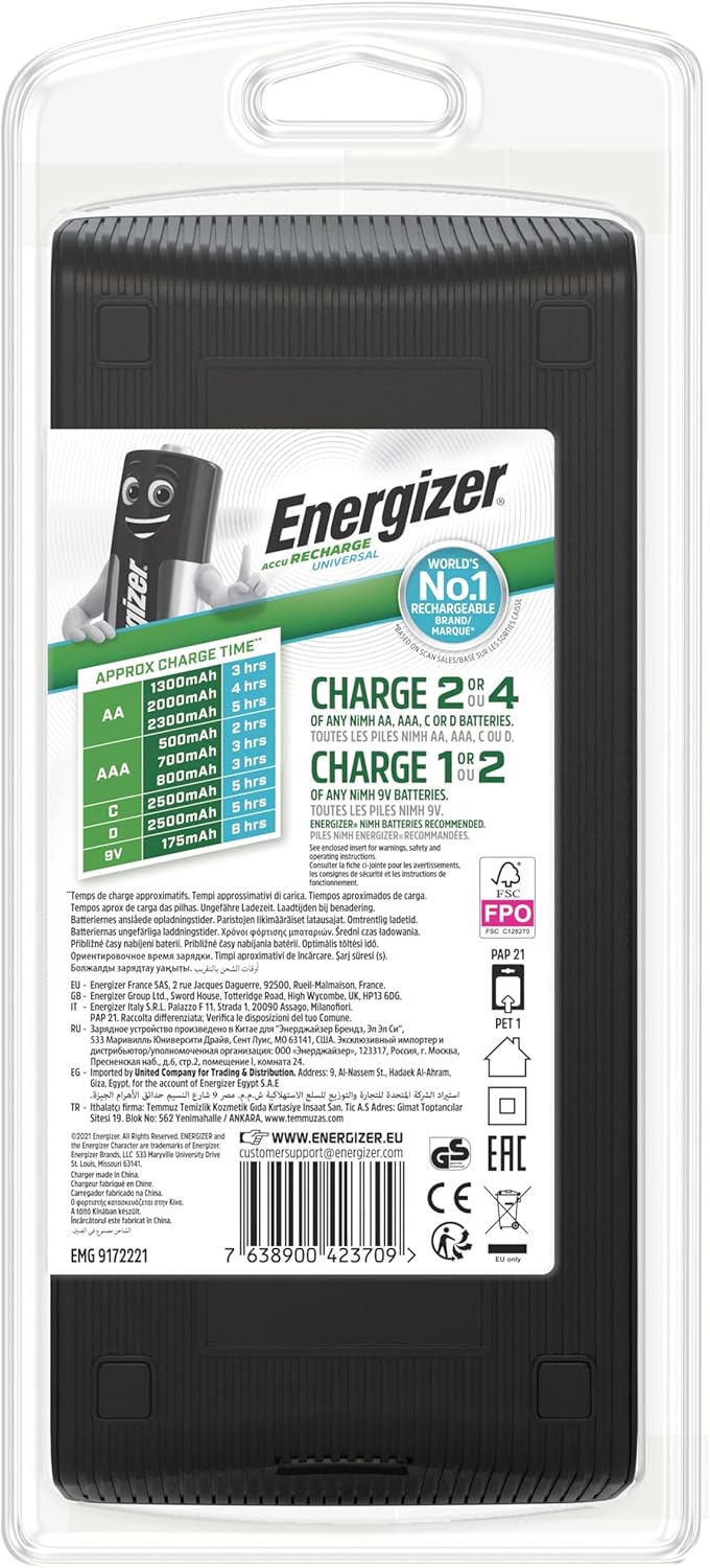 The Energizer® Universal Charger is the perfect, adaptable battery charger for the entire household. It accommodates the five most common battery sizes, ensuring everyone has the power they require.