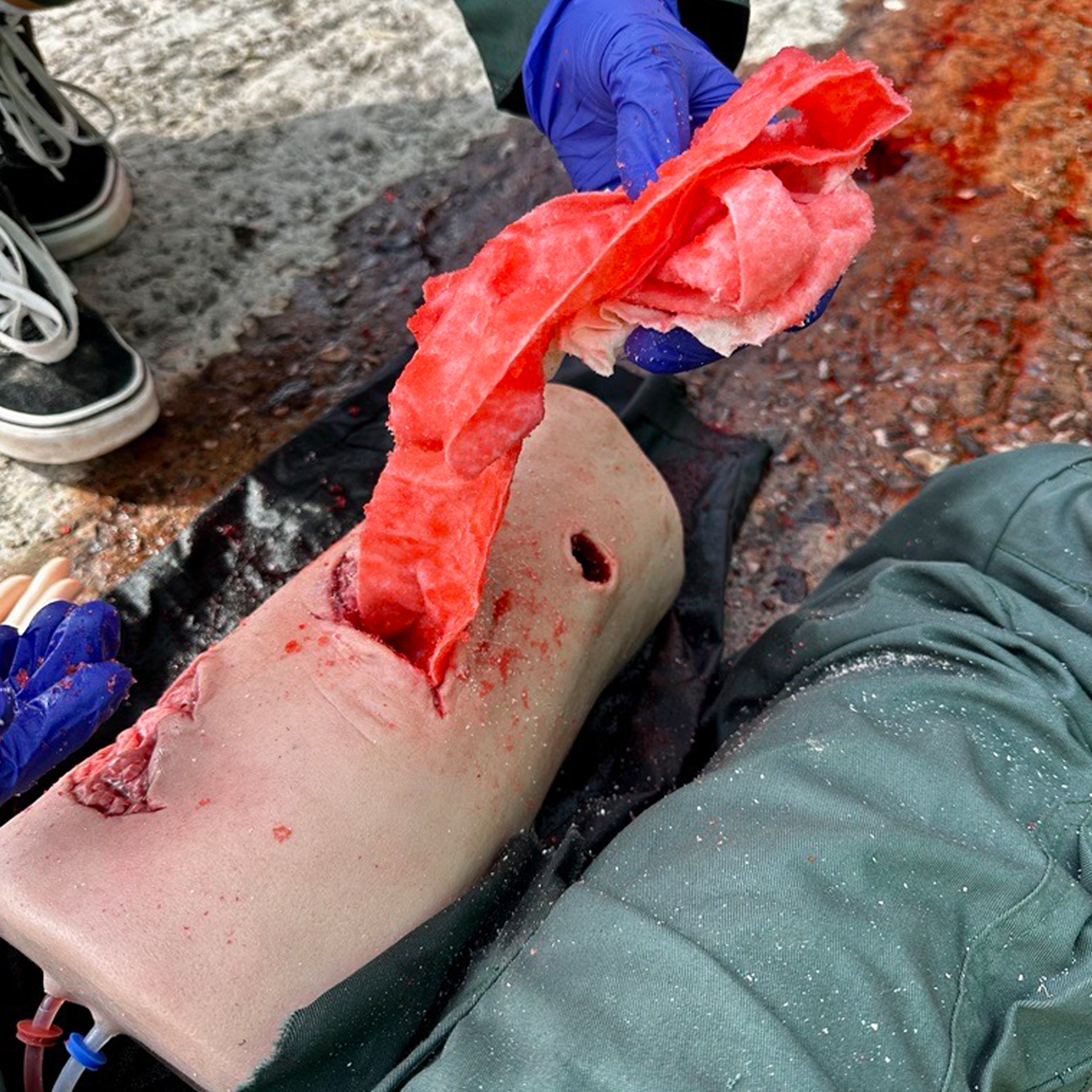 Utilizing realistic models with authentic skin texture and bleeding injuries that replicate knife and gunshot wounds prepares individuals for managing traumatic injuries and mastering haemorrhage control techniques.