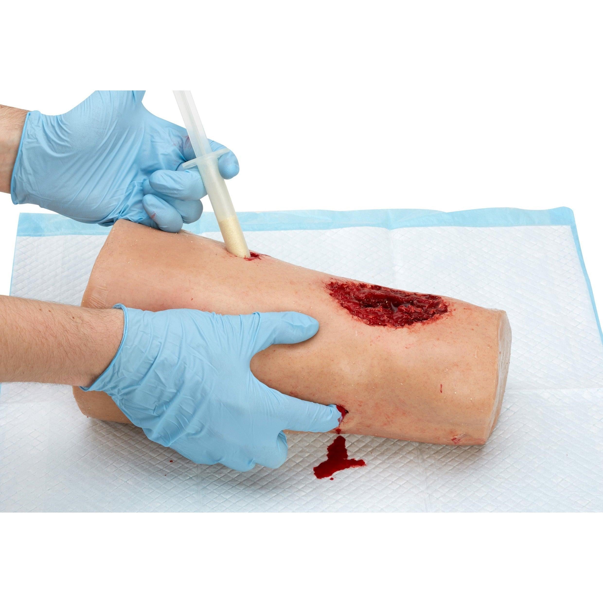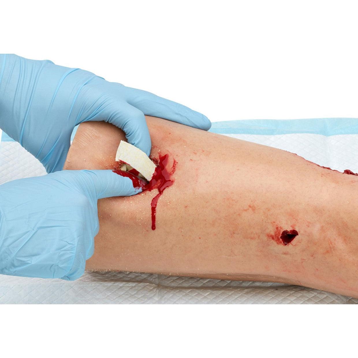 - Open surface wound for Celox Granules and Gauze packing - Blood can be added to the wound before packing to simulate bleeding