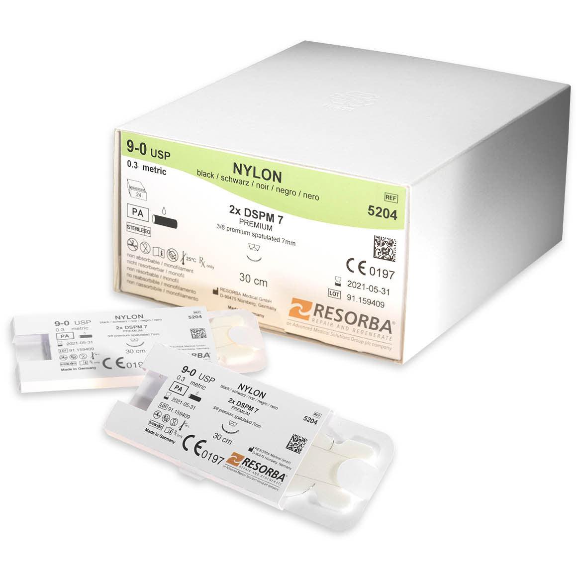 NYLON is a synthetic, non-absorbable monofilament thread produced through the polycondensation of hexamethylenediamine and adipic acid to create Polyamide 6. Due to its exceptional tensile strength, even at minimal thread diameters, nylon is ideal for delicate sutures in microsurgery. Polyamides have the capacity to absorb up to 10% water.