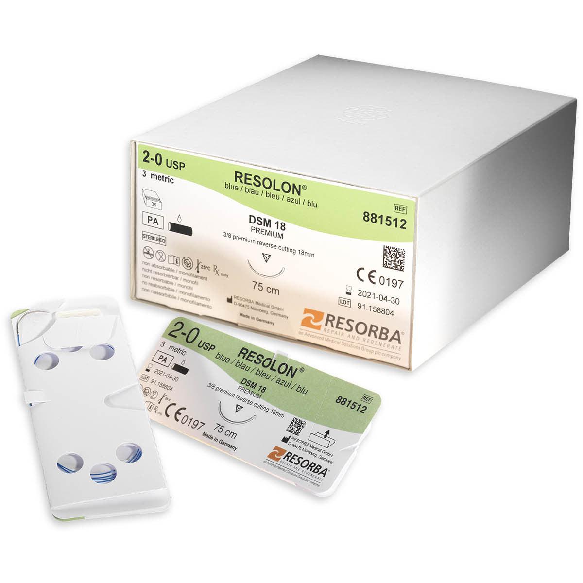 RESOLON is a monofilament Polyamide 6 thread. This suture material is specifically designed for RESORBA. During production, RESOLON receives specialized treatment, contributing to its exceptional softness and flexibility, even when dry and sterile. This enhances its handling and knotting capabilities while maintaining optimal knot tensile strength. Although its hydrophilic properties limit its applications, RESOLON is particularly ideal for skin sutures.