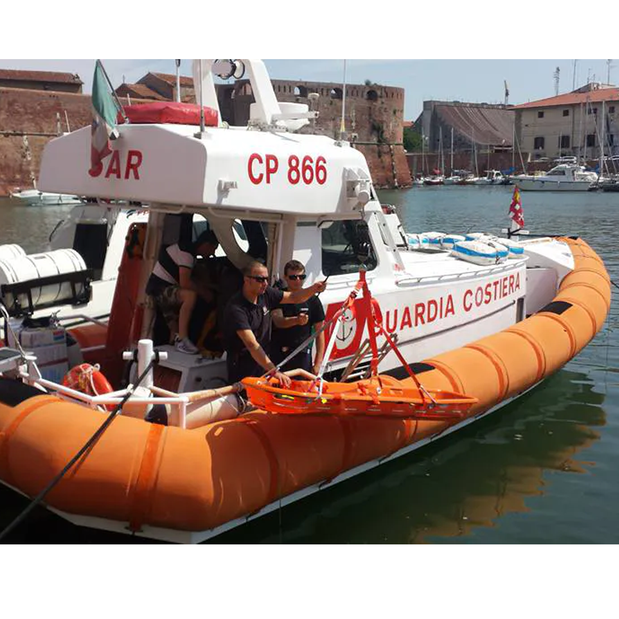 The four adjustable lifting bridles attach to anchor points or rings along the stretcher's perimeter using a spring catch. This ensures the stretcher stays level with the ground during lifting.