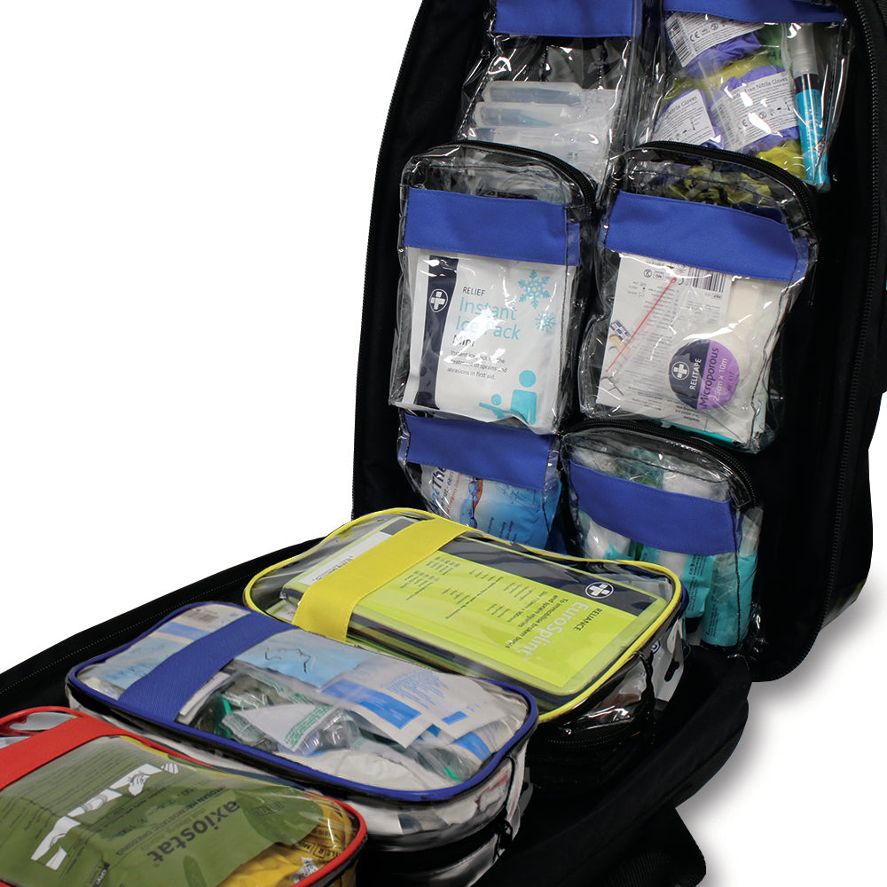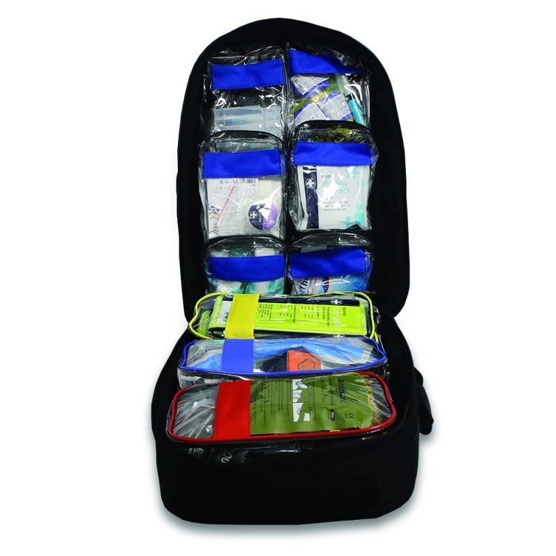 Supplied in a rugged, tactical-style black rucksack with colour-coded internal pouches, this kit ensures rapid identification and fast access to vital medical supplies when every second counts. The well-organised layout allows responders to work efficiently under pressure and manage a broad range of emergency scenarios.