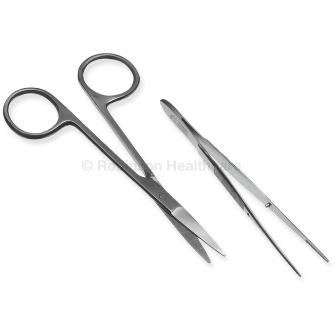 Disposable Iris Pack featuring Iris scissors and forceps designed for precise handling or cutting of delicate tissues or sutures. Crafted from premium medical-grade surgical stainless steel and packaged in a sterile, easy-to-open pack.