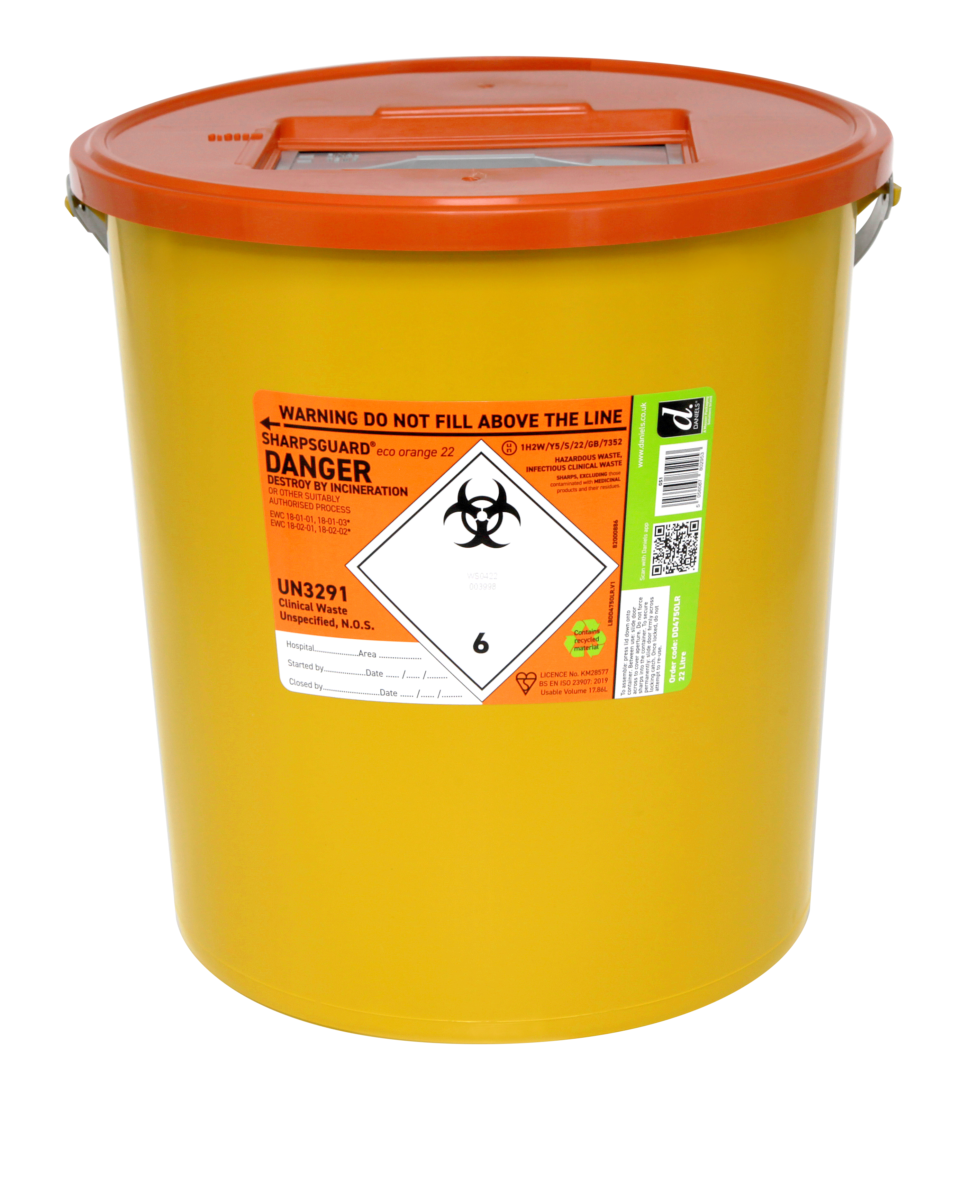 The SHARPSGUARD® orange 22 is perfect for use in operating rooms, labs, and sluice areas that handle large amounts of hazardous waste. Its broad opening facilitates the cost-effective and easy disposal of sizable items.