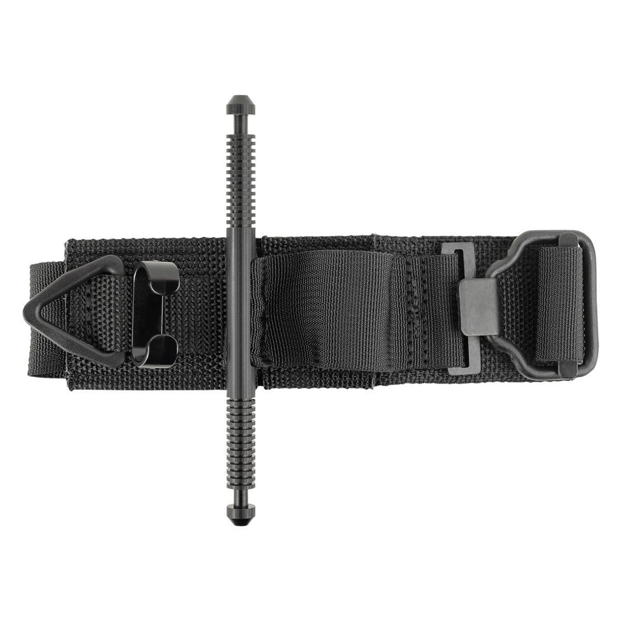 The aircraft-grade aluminum windlass rod features a textured grip for reliable twisting. The windlass locks into a Tri-Ring Lock™ and Tourniquet Retention Assistance Clip™ (TRAC).