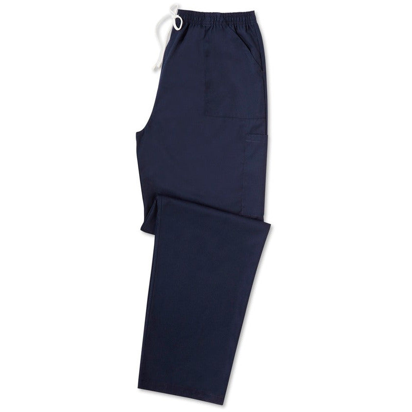 These smart scrub cargo trousers feature a fully elastic waistband with a drawstring for a secure and comfortable fit. They come with two hip pockets and a side pocket for added convenience.