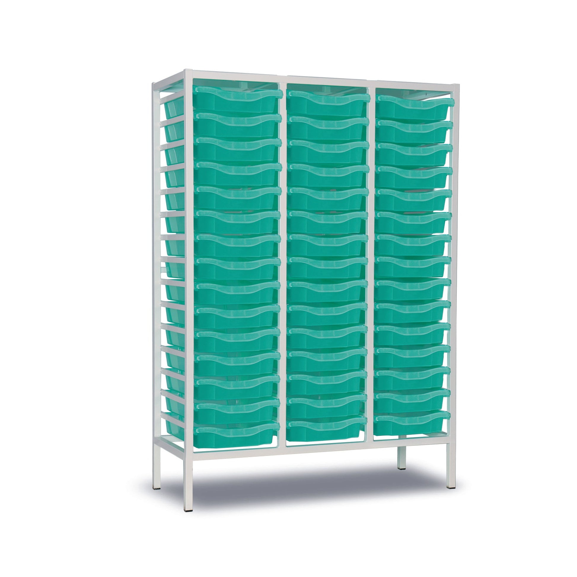 45-Tray Tall Triple Column Static Metal Storage Frame with Aqua Green Trays - W1050 x D430 x H1495mm (55kg)
