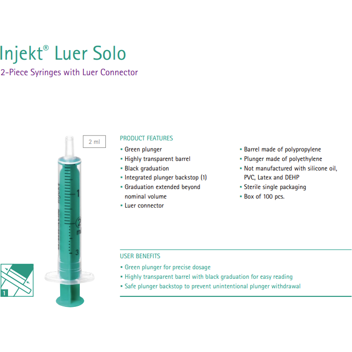 Experience the seamless and reliable performance of the B Braun™ Solo Cone Leur syringe. The green plunger allows for effortless identification of fill levels, while the dual-seal stopper ensures the contents remain secure.