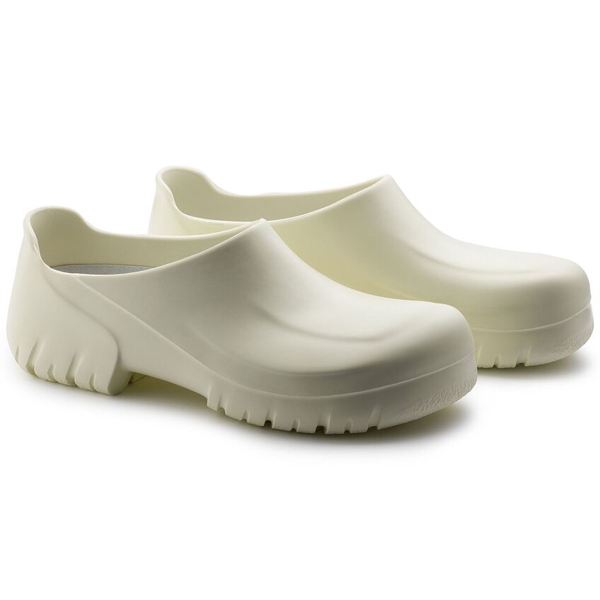 The A 630 PU clog is designed to meet high hygiene standards and provide exceptional slip resistance. Its fully enclosed structure and slip-resistant tread ensure secure footing in culinary and food service environments. The clog's oil- and grease-resistant material is also water-repellent, making it easy to clean thoroughly. The cork-latex footbed can be removed and the clog can be washed at temperatures up to 80° Celsius. Both components are suitable for regular disinfection. The original BIRKENSTOCK footbed, with its anatomical design, supports joints and tendons and is washable at up to 30° Celsius. The footbed is available separately for replacement if needed. The A 630 model is certified according to EN ISO 20347:2012 OB E (SRC category).