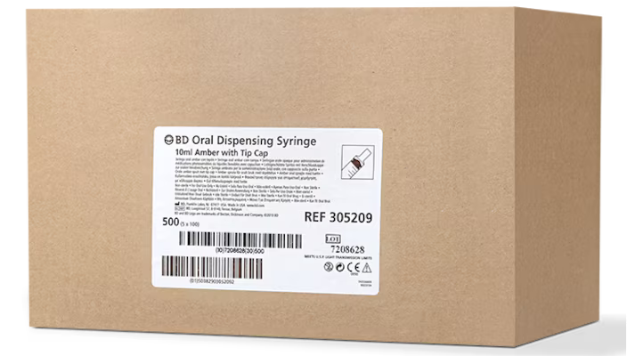 This amber syringe meets USP requirements for photo-sensitive medications.