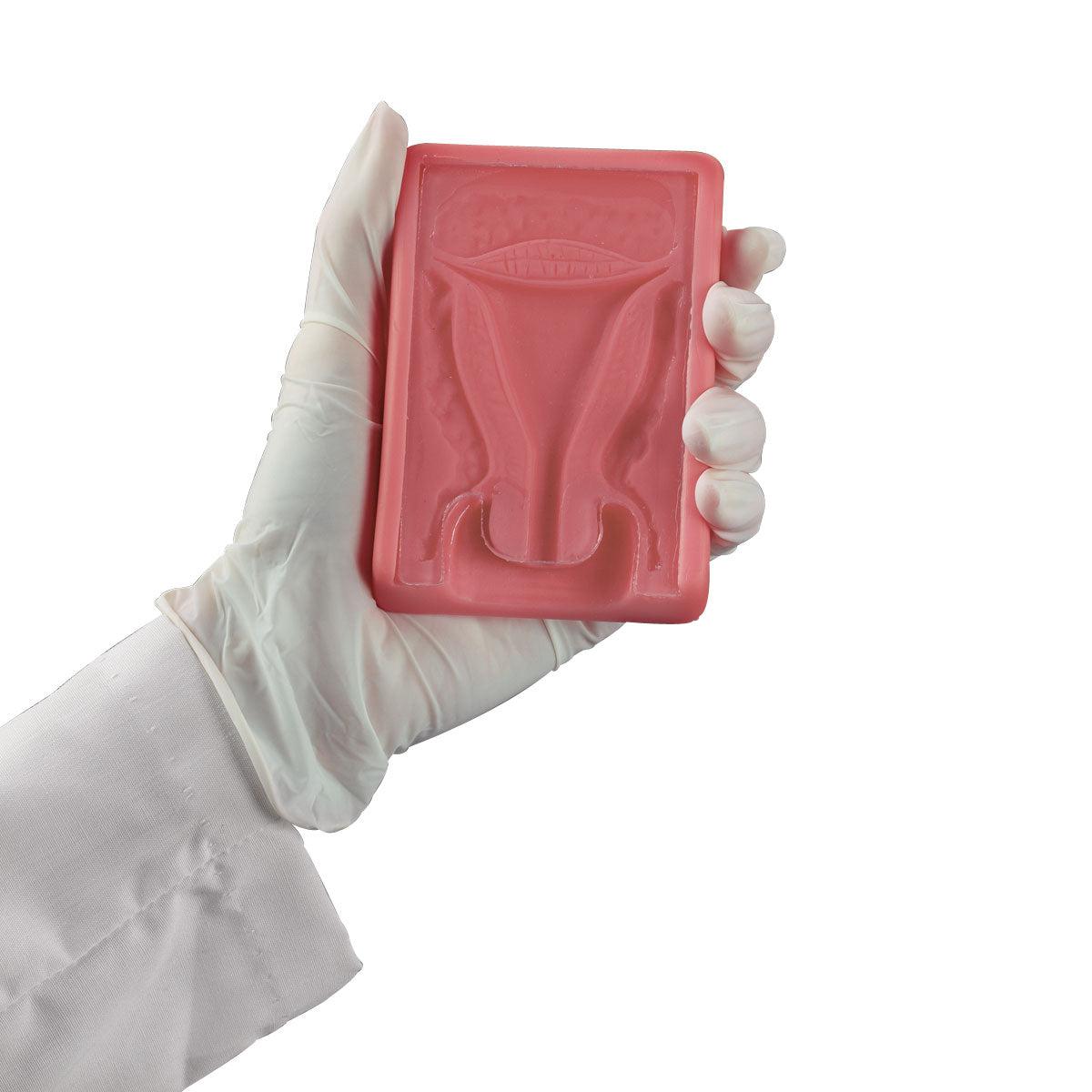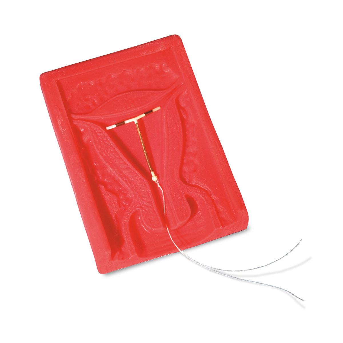Portable training device designed to assist in comprehending the accurate placement of an intrauterine device (IUD) within the uterus. Made from robust plastic, this trainer features a clear cover for easy observation of the IUD's insertion and positioning (IUD not included).