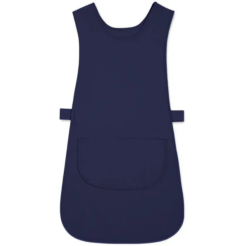 Extended-length tabard designed for taller individuals, featuring a convenient front pocket and adjustable side closures. The polyester and cotton blend fabric guarantees long-lasting wear. Offered in multiple color options.