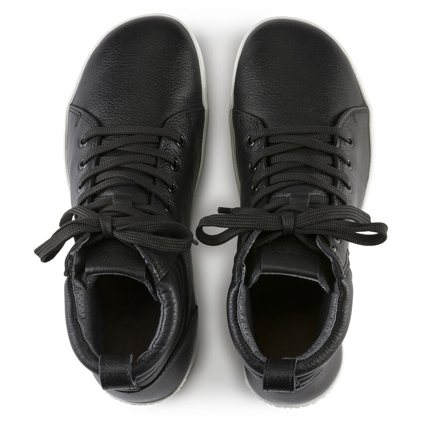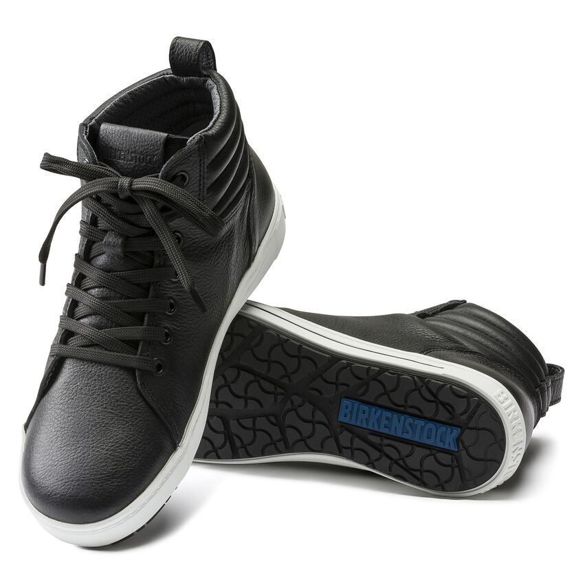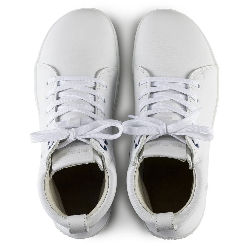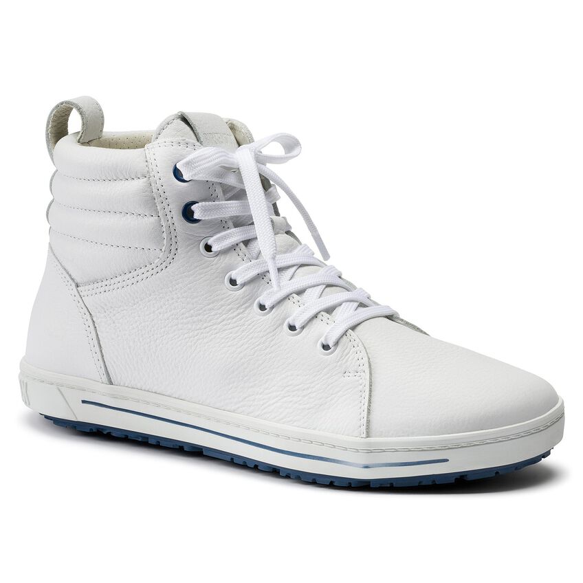 The QO700 work shoe by BIRKENSTOCK, featuring a detachable footbed, ensures excellent support and reduces foot fatigue, making it ideal for prolonged standing and movement in challenging work settings. This shoe is designed as a contemporary, ankle-high sneaker with a 7-eyelet lace-up and a heel tab. Its slip-resistant, oil- and petrol-resistant outsole provides effective energy absorption at the heel. Constructed from water-resistant smooth leather (WRU), it also offers antistatic properties. The shoe complies with EN ISO 20347:2012 standards and fulfills the O2 protection category requirements.