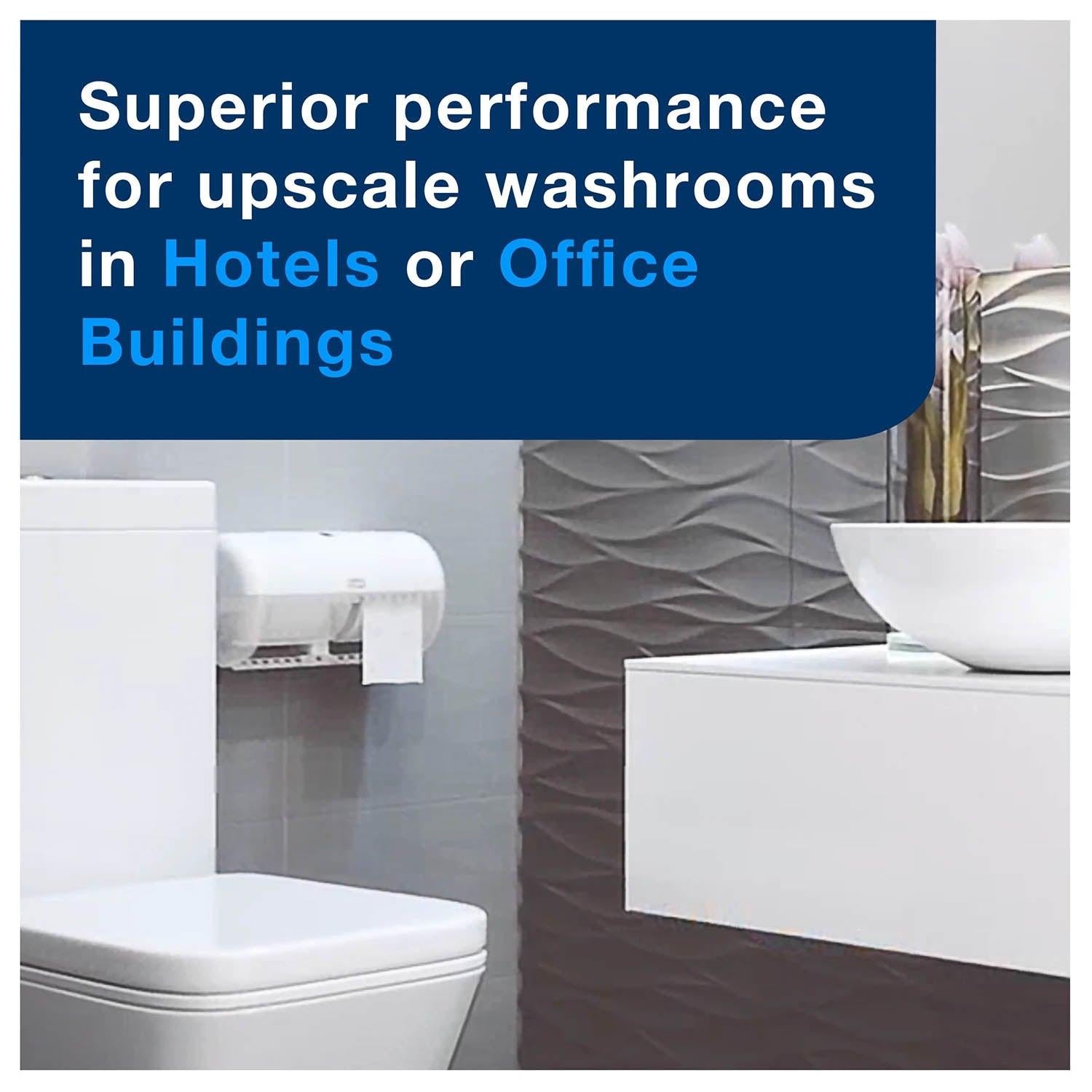 Offer your visitors the comfort of home with the Premium Tork Conventional Toilet Roll. This plush toilet paper provides a sophisticated appearance and exceptional performance for high-end restrooms in hotels or corporate offices.